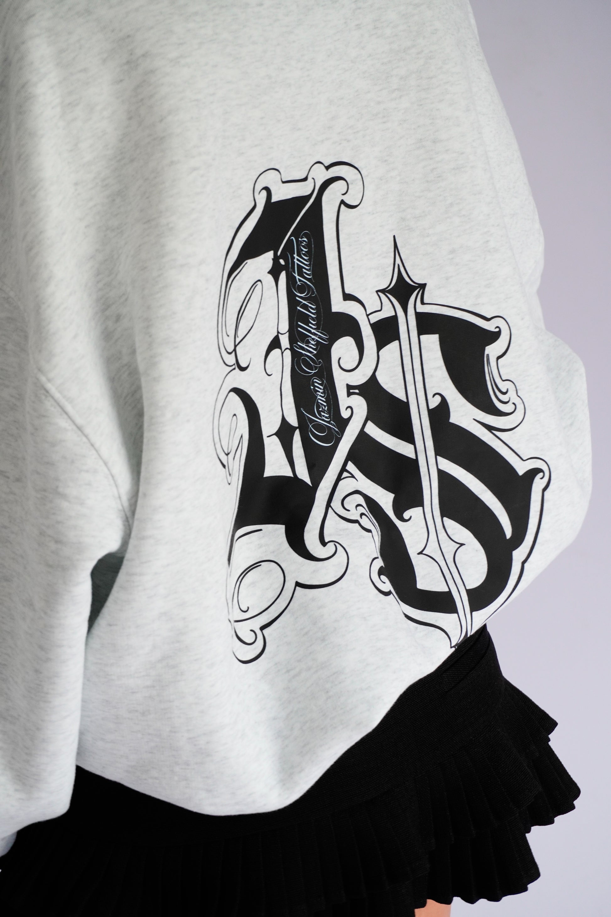 White Marle Crew Sweater With Jazmin Front & JS Tattoos Back.